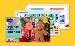 Countdown to Christmas with our fun and engaging, curriculum-linked, interactive, science advent calendar featuring a 5-minute science activity and science-themed cracker joke and link to a resource for diving deeper, for each day of advent.