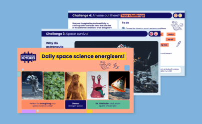 Daily 15-min STEM challenges for 7-11 year olds, around the theme of living in space; perfect for energising a space science week.