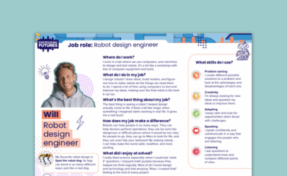 Use this job card to inspire your pupils to explore a future careers in robotics and connect their learning to the real-world.
