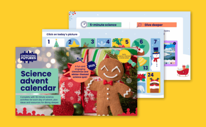 Countdown to Christmas with our fun and engaging, curriculum-linked, interactive, science advent calendar featuring a 5-minute science activity and science-themed cracker joke and link to a resource for diving deeper, for each day of advent.